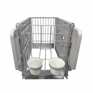A durable, galvanized steel hay feeder designed for use in group or paired housing. It allows feeding from both sides, maximizing access and reducing competition among calves. Easy to install and clean.