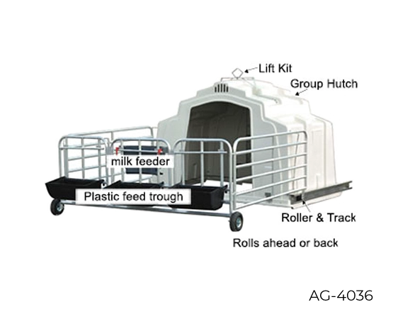 Note: Pen system does not include group hutch, lift kit, or milk feeder.