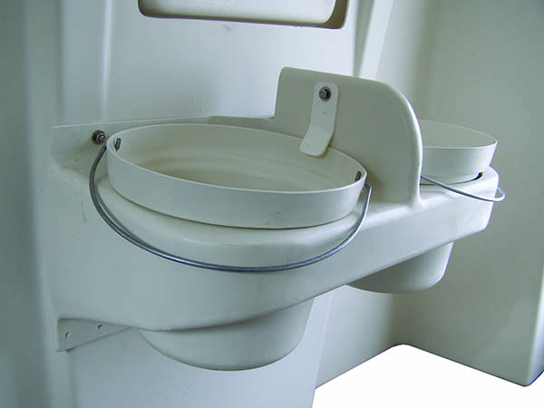 Keep feed dry and water clean with the only manger featuring a splash guard and secure pail stoppers. Easily mount it inside the hutch—side or rear door—and enjoy two standard pails included with every unit.