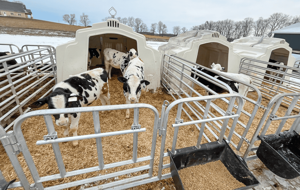 They can reduce investment per calf by up to 50%, because fewer single-calf hutches are needed and the hutch cost is shared across a group. Feeding and cleaning per calf take less time, and the gentler transition supports faster gains with fewer health issues.