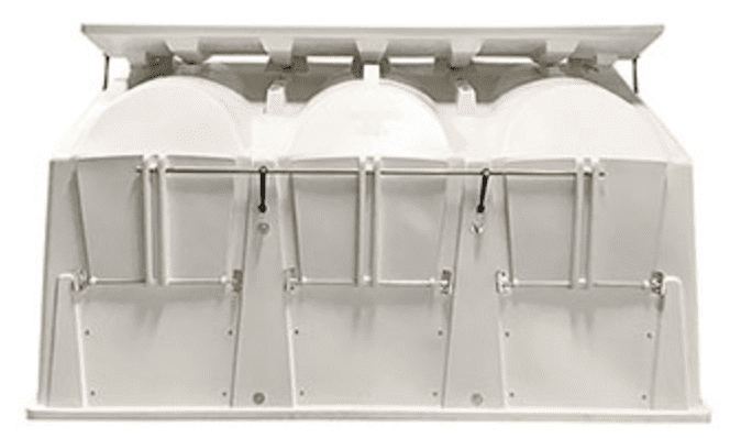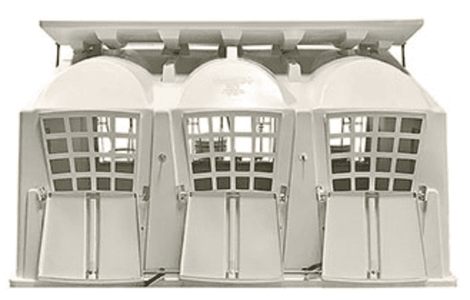 Depending on the configuration, a Flex Hutch can house either two calves (2-unit model) or three calves (3-unit model).