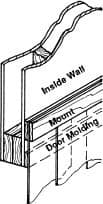 - Assembled mount is then attached to interior wall, with bottom of mount located 3" above door molding (use 1/2" dia. fasteners spaced every 12", starting 2" from end)
